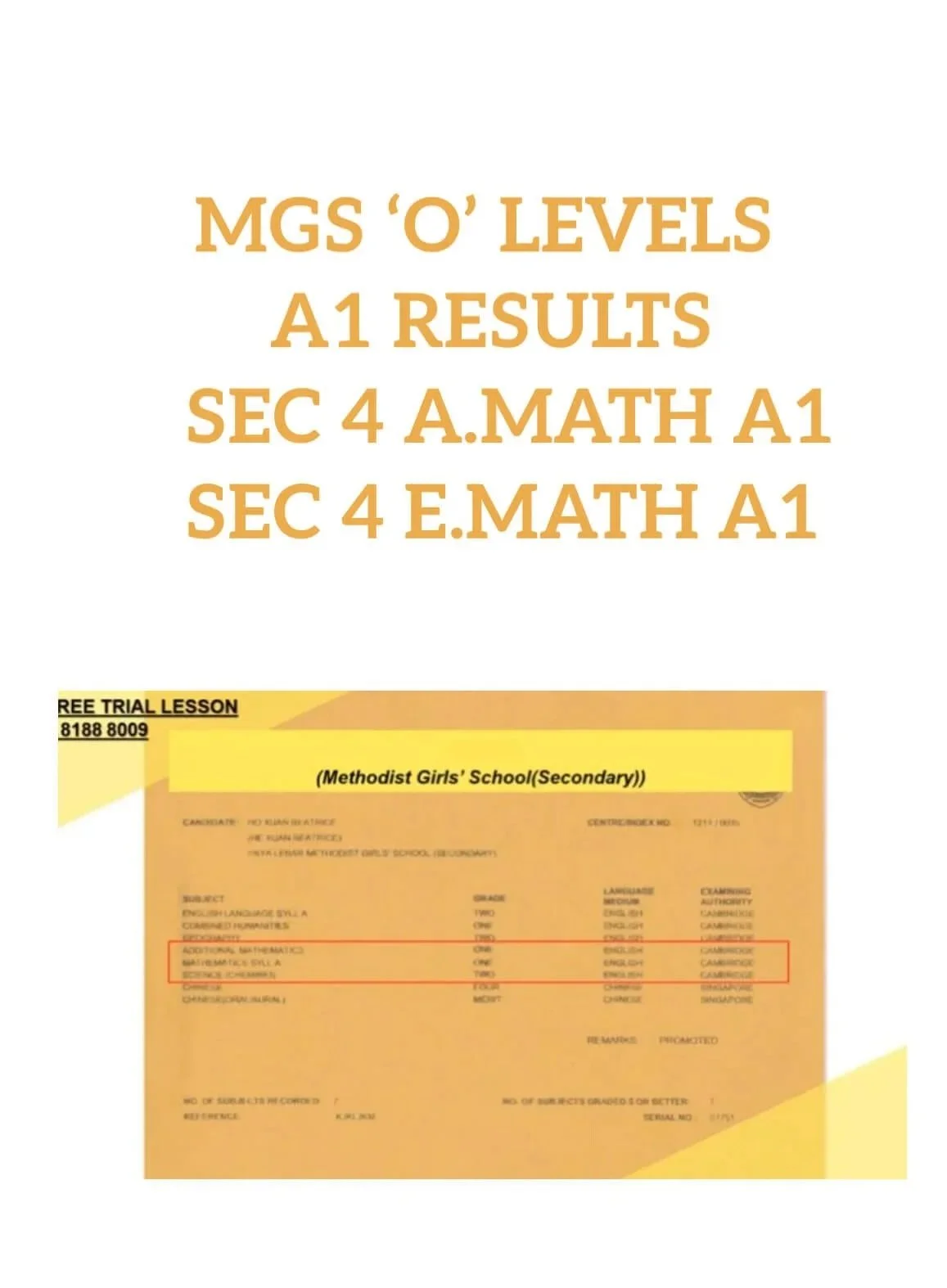 MGS ‘O’ LEVELS 88888A1 RESULTS 888SEC 4 A.MATH A1 888SEC 4 E.MATH A1