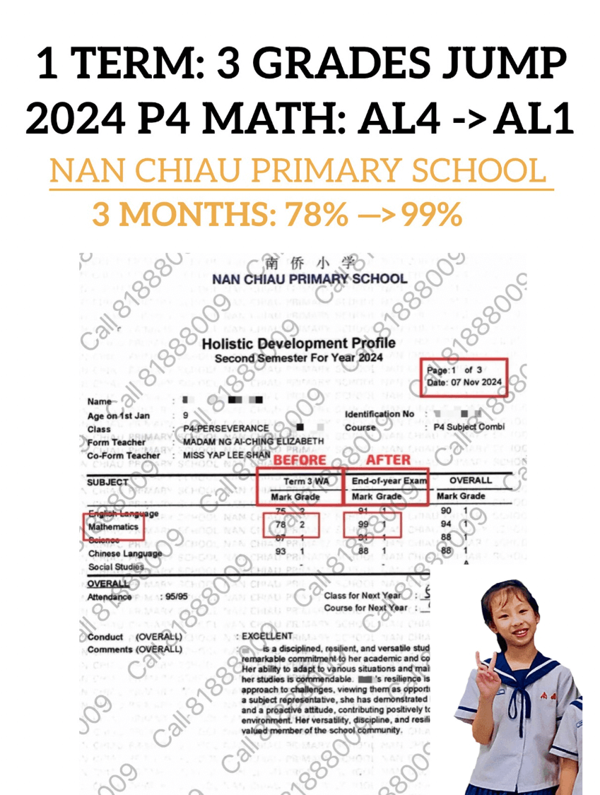 PROOF OF SUCCESS FROM F9 TO A1 ACADEMY’S P4 MATH TUITION: