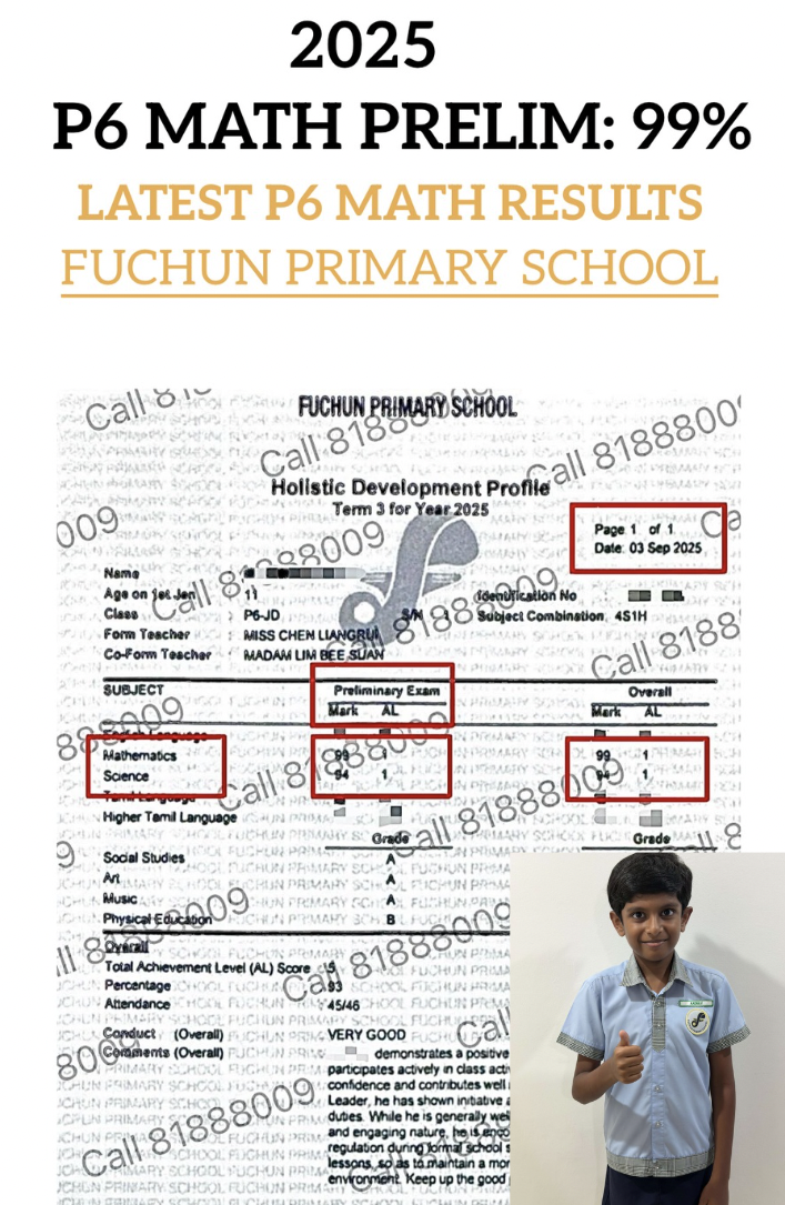 PROOF OF SUCCESS FROM F9 TO A1 ACADEMY’S P5 MATH TUITION: