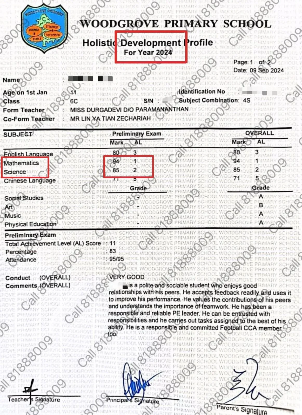 The BEST PSLE SCIENCE TUITION IN SINGAPORE, F9 TO A1 ACADEMY, makes fullest use of our proprietary WIN™ ACCELERATED AL1 SCIENCE FRAMEWORK, helping students who failed Primary 5 Science Exams achieve phenomenal improvements in Primary 6 Science Exams. The LATEST 2024 PRIMARY 6 SCIENCE RESULTS derived from our student’s report book from WOODGROVE PRIMARY SCHOOL & the ONLY PSLE SCIENCE TUITION website to publish real-time students’ results, as shown above, proves that F9 TO A1 ACADEMY is the undisputed BEST PSLE SCIENCE TUITION IN SINGAPORE.