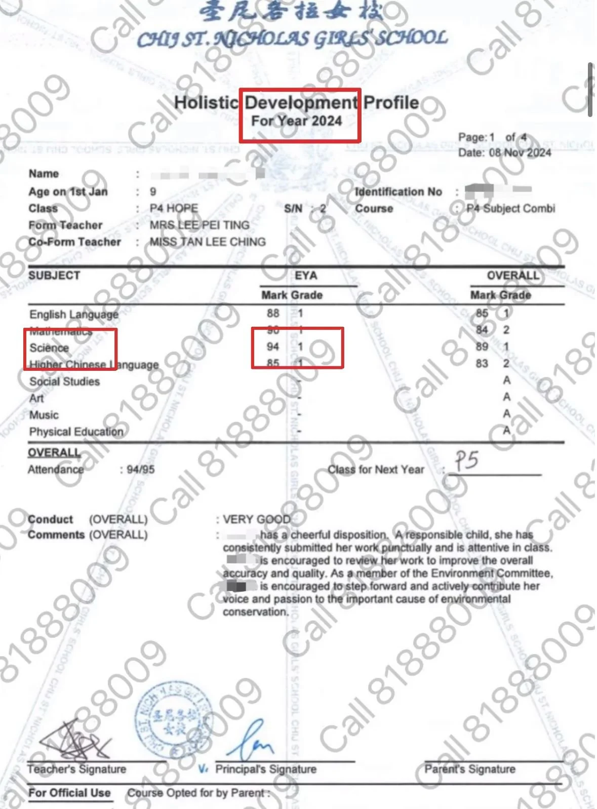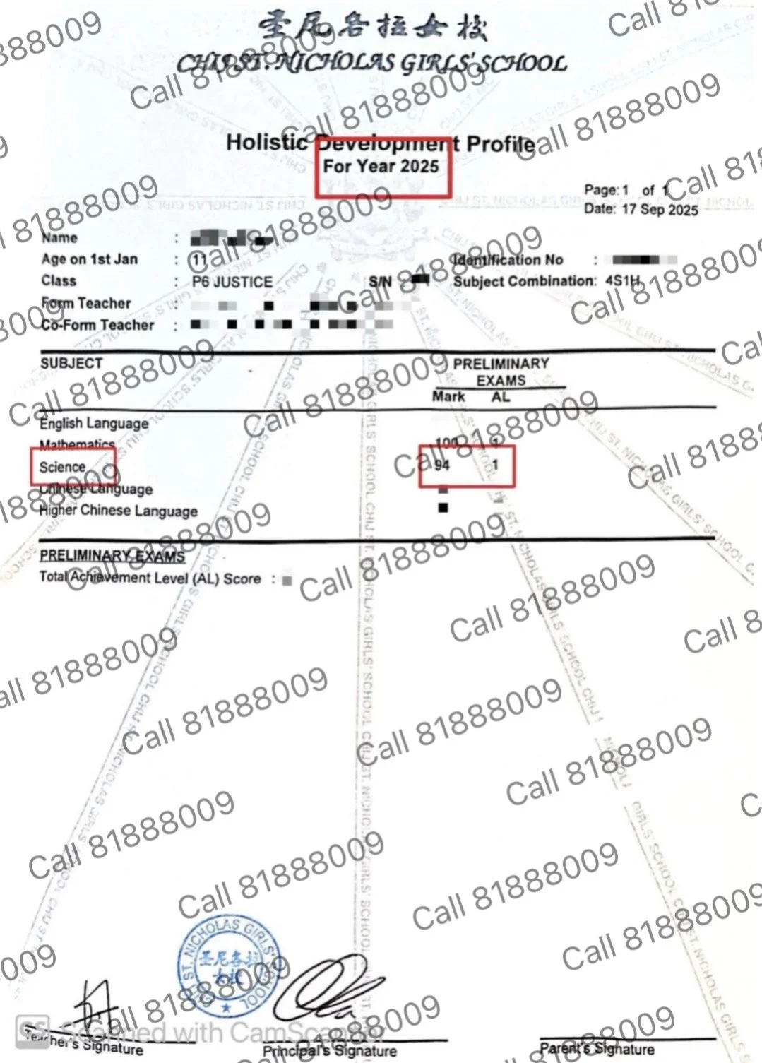 F9 TO A1 ACADEMY is the ONLY PSLE Science tuition centre in Singapore that openly showcases students’ Science awards and 100% Science results. The most updated 2024 Science AL1 results, verified from students’ official report books at St. Nicholas Girls’ School, prove that F9 TO A1 ACADEMY is truly the Best PSLE Science Tuition in Singapore.