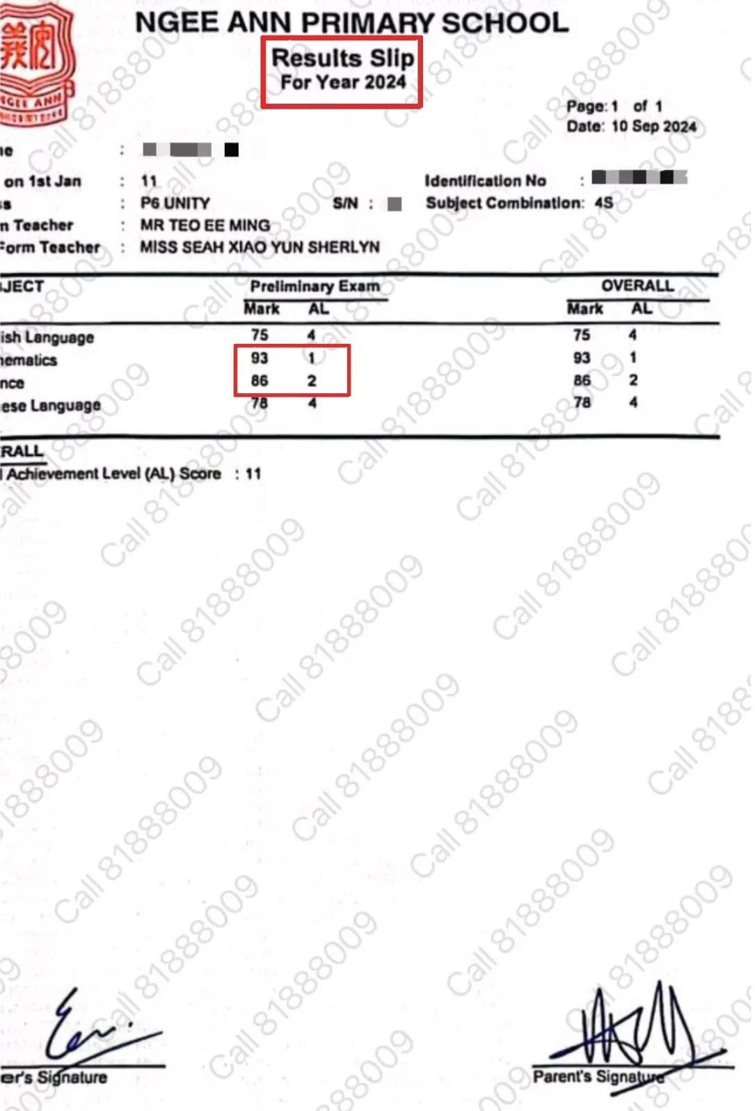 LATEST: YEAR 2024 88 NGEE ANN PRI SCH 8 P6 SCIENCE RESULTS: AL2